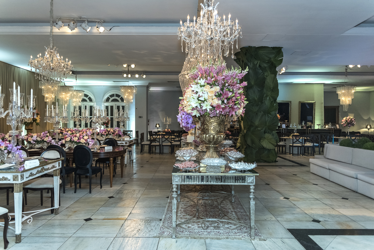 Inspiração para quem deseja usar e abusar de lustres e flores na sua Decoração de Casamento! Lindo não é? Foi assim o Casamento da @ludcostal e @brenoassuncao ❤❤❤